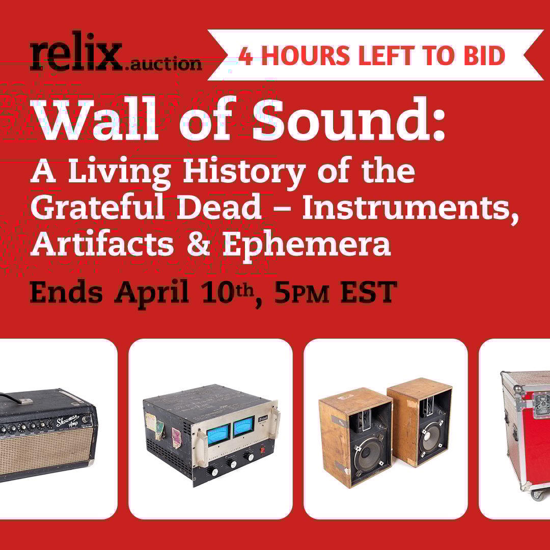 Wall of Sound: A Living History of the Grateful Dead - Instruments, Artifacts & Ephemera. This auction, presented by ANALOGr in partnership with Relix, gathers hardware, and much more, into a single historic sale.