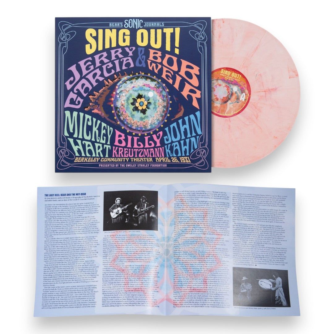 On April 25, 1981, the Grateful Dead, billed here as "The (Not) Dead", took the stage at Berkeley Community Theater for an intimate acoustic set that remains one of the most beloved documents of the band's quieter side. Captured by the legendary Owsley "Bear" Stanley and released as part of his ongoing Bear's Sonic Journals archival series, Sing Out! showcases Jerry Garcia, Bob Weir, Mickey Hart, Billy Kreutzmann, and John Kahn running through a warm set of folk, bluegrass, and country classics.