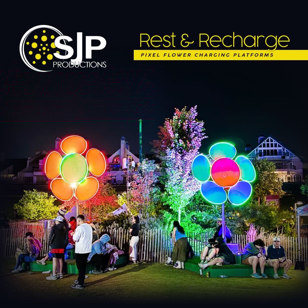 After years of lighting up trees all over the country, they’ve launched a new set of experiential amenities for the benefit and enjoyment of festival lovers, like you. The Pixel Flower Charging Platforms are a beautiful place to rest & recharge. Help spread the word and tag a festival that needs these!