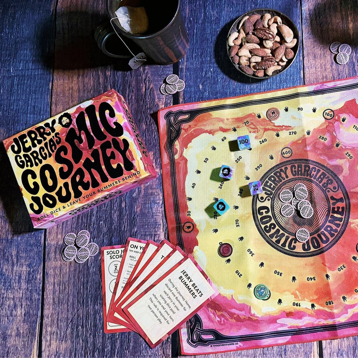 A dice game made in partnership with The Jerry Garcia Family featuring Jerry's art. Quick and easy to learn, compact and portable, Cosmic Journey is the game to reach for when good vibes are needed at home or on the road.