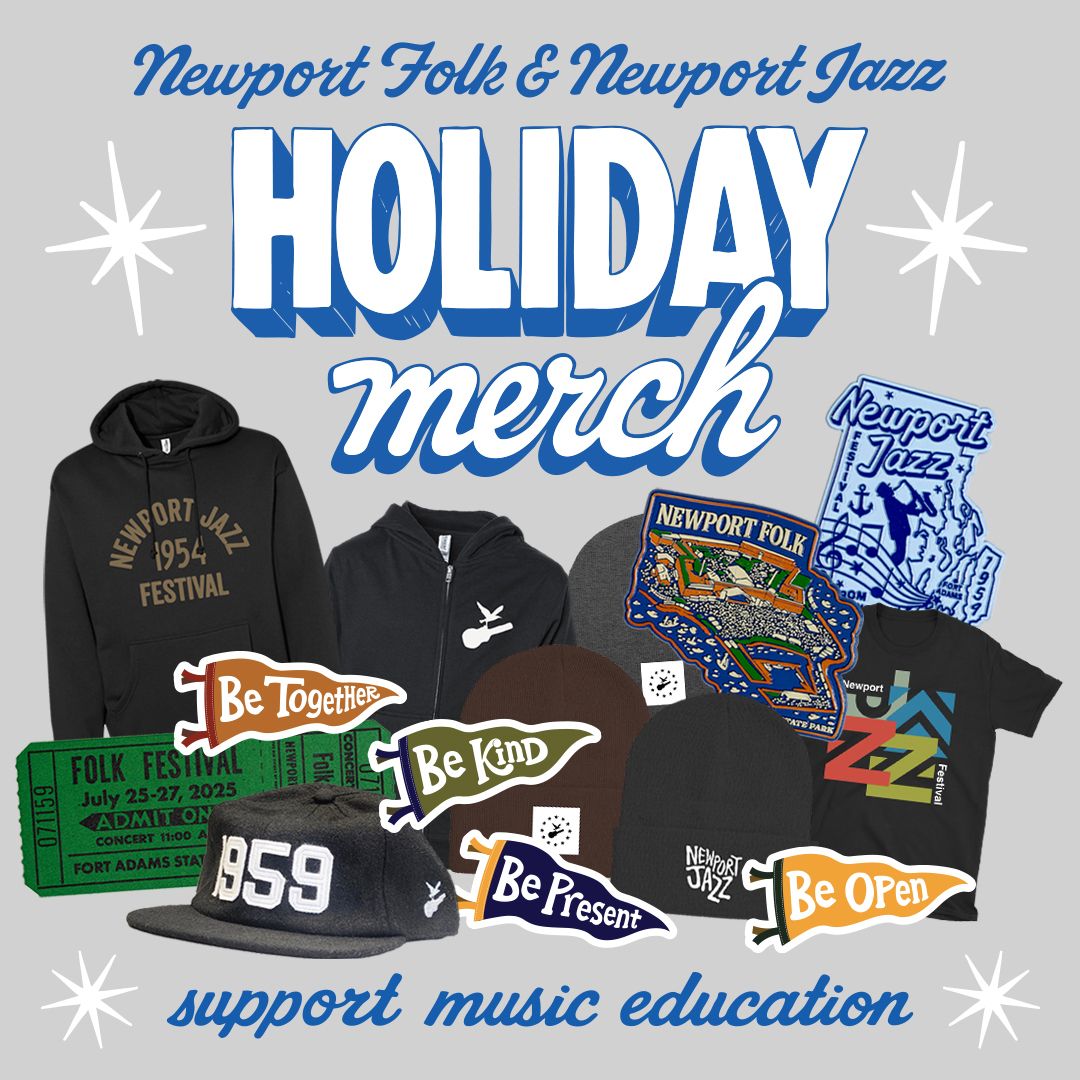 Support Newport Festivals Foundation's music education programs by grabbing some Newport Folk & Jazz Holiday merch! Grab your hats, sweatshirts, beanies, rubber magnets, photo prints, vinyl records, sticker packs, and more. Place orders before December 15 for best chances of arriving in time for the holidays.