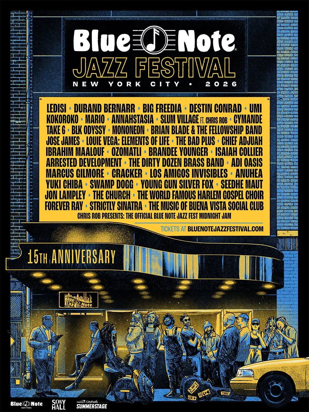 Blue Note Jazz Club has officially released the full artist lineup for its 2026 Blue Note Jazz Festival, returning to New York City from June 1 to July 1. The festival’s 15th annual iteration will be led by genre-leading talents like Ledisi, Durand Berarr, and Big Freedia who top a bill featuring more than 30 celebrated acts from the worlds of jazz, soul, hip-hop, funk, alt-rock and everything in between. Many of the artists featured will perform multiple times throughout the series, totaling 52 concerts.