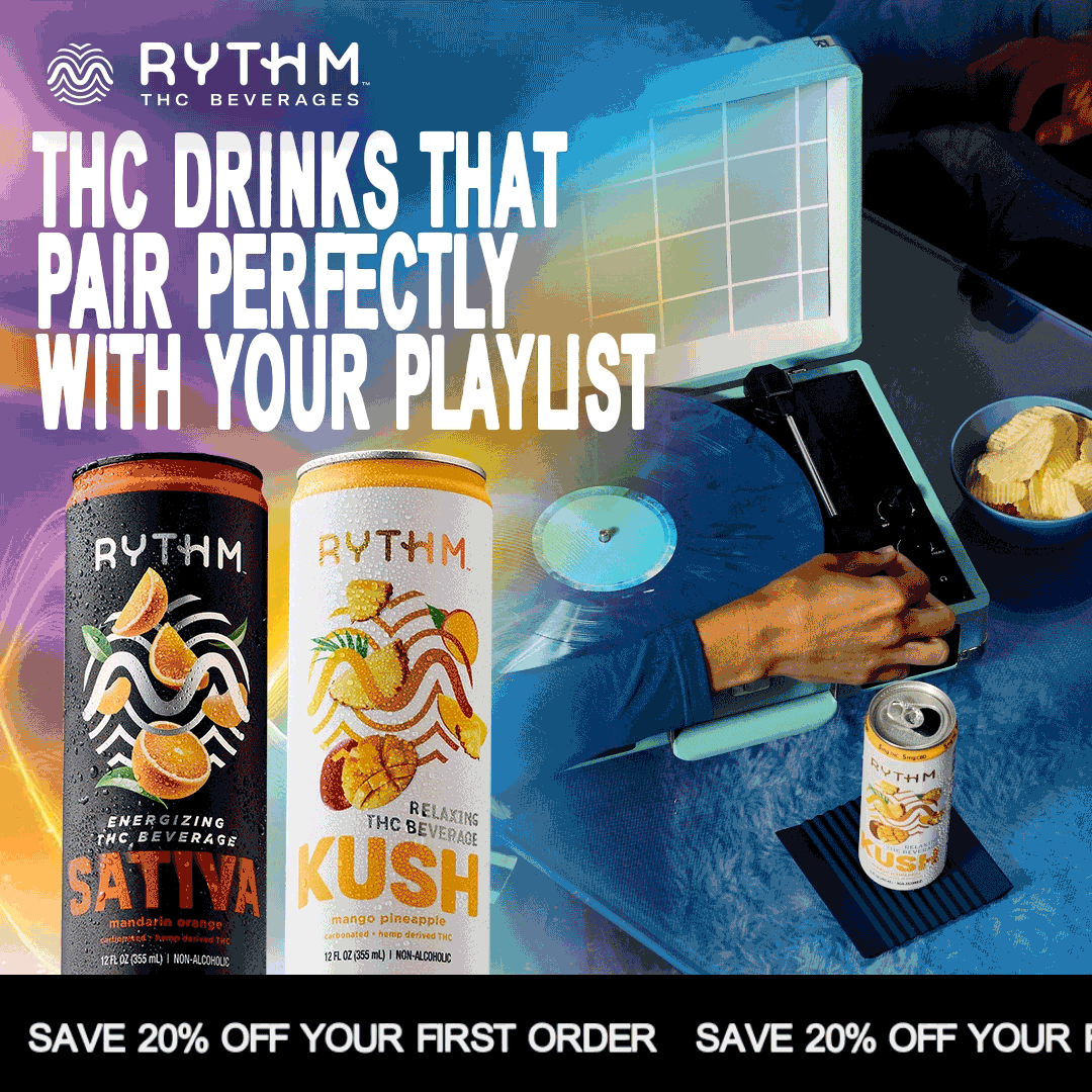 Somewhere between the noise and silence, there’s a beat that’s yours alone. RYTHM THC Beverages help you find it. Whether you’re unwinding with Kush or amplifying with Sativa, find your RYTHM and enjoy 20% off your first order.